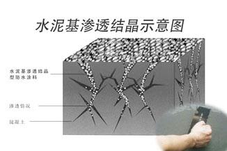 “水泥基滲透結(jié)晶防水材料”是一種灰色粉末物質(zhì),所含有的活性化學(xué)成分,會隨著水滲透進入混凝土結(jié)構(gòu)的孔隙和縫隙中。在混凝土的微孔、微縫及毛細管中傳輸、充盈,催化混凝土內(nèi)的微粒和未完全水化的成分再次發(fā)生水化作用,而形成不溶性的枝蔓狀結(jié)晶并與混凝土結(jié)合成為整體,阻止來自各方向的水及有害物質(zhì),而且該種活性物質(zhì)具有一種催化特性,能夠不斷活化混凝土中未反應(yīng)完全的水泥粒子或者結(jié)晶較差的物質(zhì),因此它能夠不斷的循環(huán)利用。只要有水存在,它就能不斷地起催化作用,使混凝土中的硅酸鹽物質(zhì)進一步結(jié)晶化,從而起到防水作用。當沒有水分時,其中的活性成份保持靜止狀態(tài),但當再與水分接觸時,上述的化學(xué)作用及致密過程便會重復(fù)發(fā)生。因此混凝土結(jié)構(gòu)即使局部受損滲漏(裂縫小于0.4mm) 在結(jié)晶作用下,會自行修補愈合,并具有多次抗?jié)B能力,從而在本質(zhì)上改變了普通混凝土結(jié)構(gòu)體積不穩(wěn)定而再次帶來的裂滲,因此具有永久的防水效果。根據(jù)ASTM、GB、JIS等標準測試完成的試驗,水泥基滲透結(jié)晶防水材料對混凝土結(jié)構(gòu)不僅防水而且防止化學(xué)有害物質(zhì)的侵蝕,保護混凝土具有極強功效。應(yīng)用范圍: