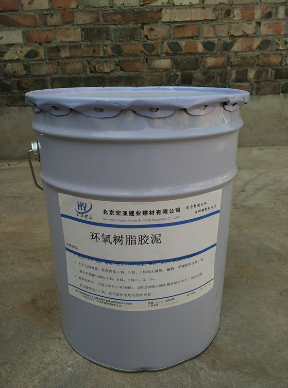 3、攪拌配料時(shí),先將A料和B料按照1:3的比例倒入桶中攪拌混合均勻,然后邊攪拌邊緩慢加入C料,直至攪拌成均勻的膠泥狀。